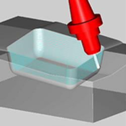 複雑な工具動作に追従して、工具(刃先、シャフト)とホルダの干渉を完全に回避できます。また特定の面をグループ分けして管理でき、そのグループの組み合わせで干渉をチェックできます。 - 荒加工パス