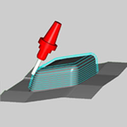 曲面上に作成したパスを利用して荒加工パスを作成できます。パスを加工軸方向に沿って複数の深さにコピーすることで完全同時5軸の荒加工を作成します。 - ツールパスのコピー