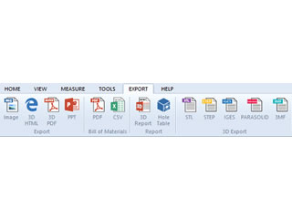 STEP, JT、Parasolid、IGES* 3D PDF、3D HTML、STL、PPT、画像 BOMテーブル、穴テーブルおよび
