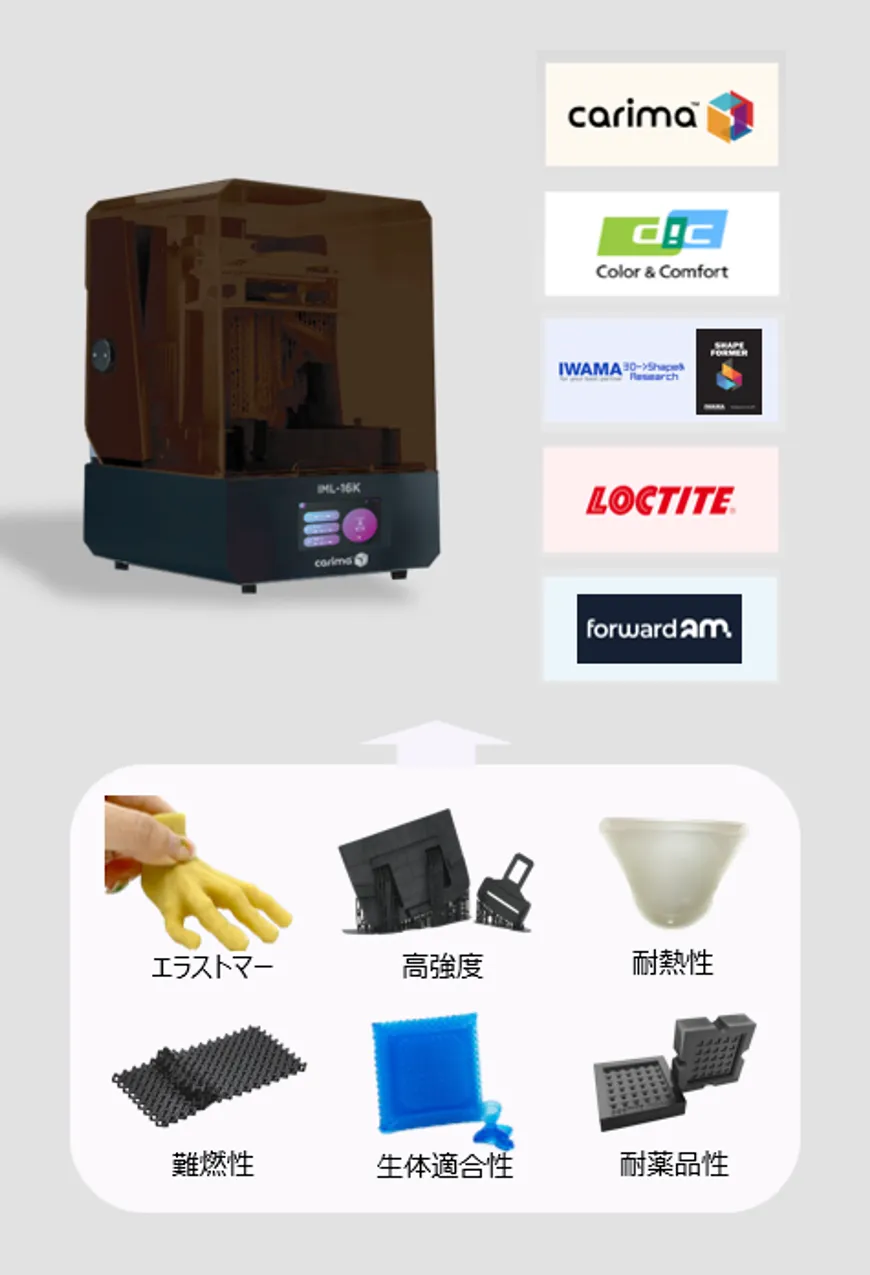 また、お客様ご希望の物性に合わせたカスタムのレジン材料をCARIMA社で特別にデザインし、ご提供することもできます。