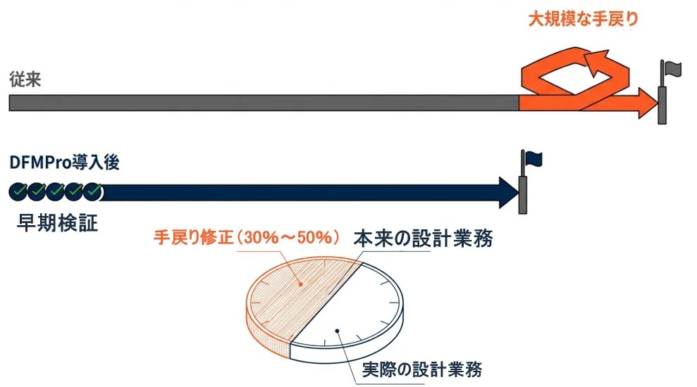 DFMProは、早期検証により修正回数や設計変更コストの抑制に貢献します。